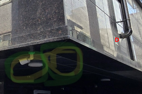 또한 D 부위에서, 우수관이 내려오다가 다시 벽속으로 들어가는 것으로 보이는데요. 이 우수관이 어느 경로를 거쳐서 배수되고 있는지도 보셔야 할 것 같습니다.