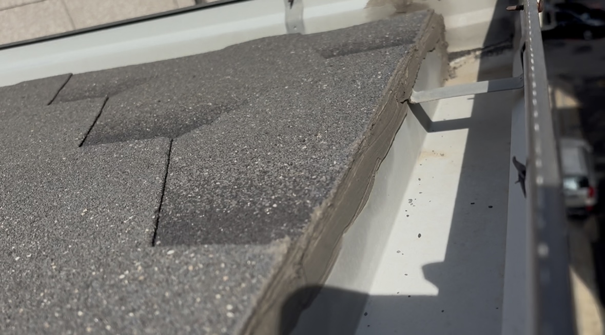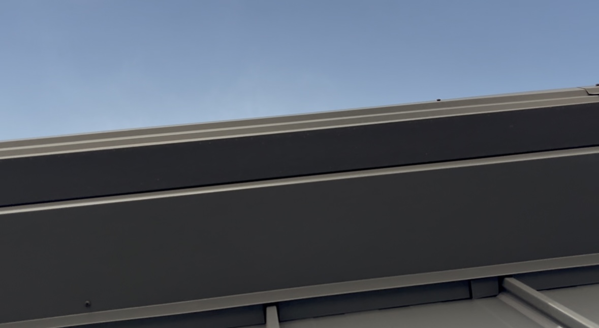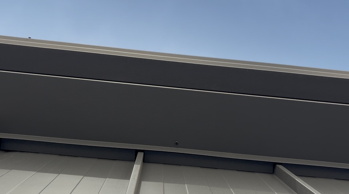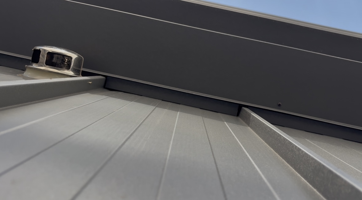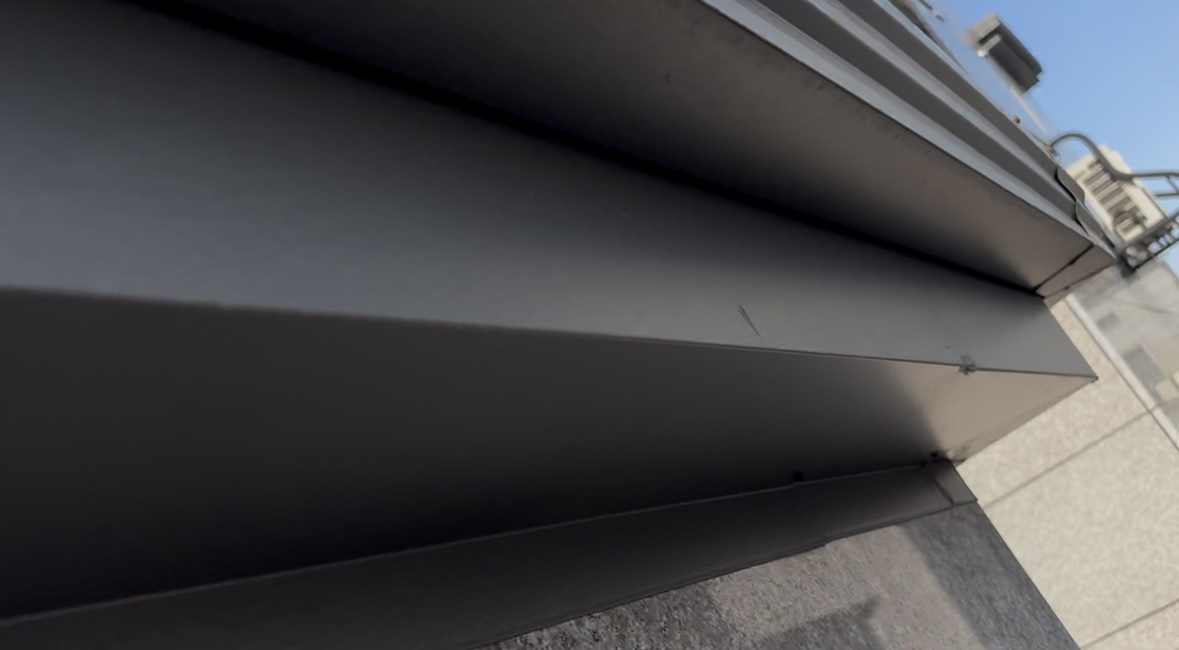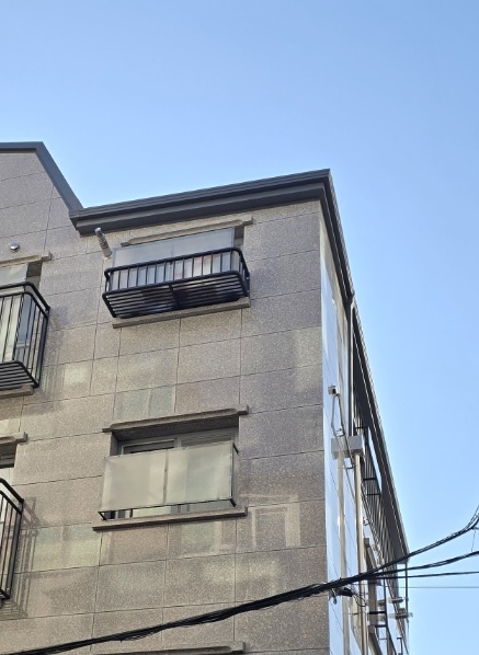 건물 앞면에서 봤을 때 오른쪽에 위치한 베란다 위쪽 지붕 접합부 입니다.
