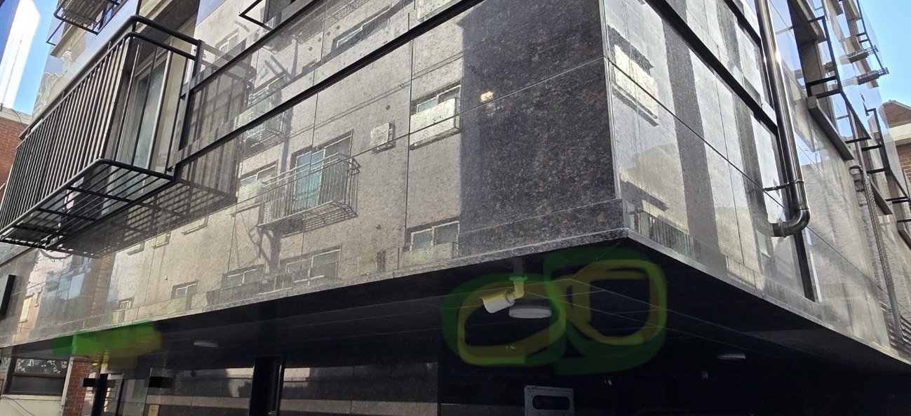 저 도면에서 보면 1층이 2층보다 들어가 있고 2층부터 건물 앞쪽으로 더 나와있는 2층 바닥 부분 건물 겉면에서 물이 계속 뚝뚝 떨어지고 있습니다.