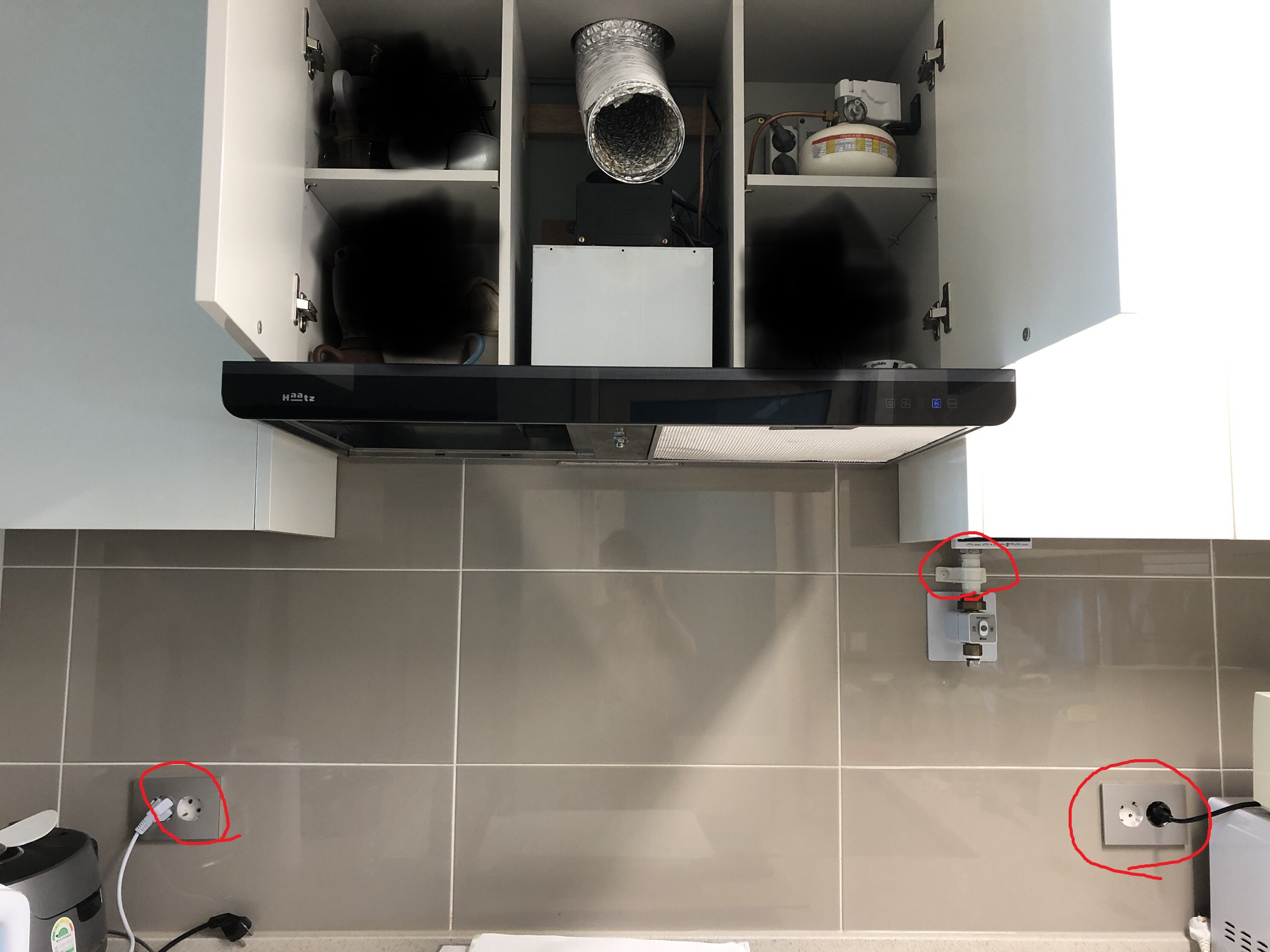주방 후드를 작동할 때마다 냄새가 발생했기 때문에 후드를 통해서 냄새가 들어오는 줄 알았는데 그게 아니었네요. 콘센트와 가스관이 후드 가까이 붙어있어서 후드를 통해 들어오는 것으로 착각하고 있었네요.)