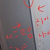 방화문 모서리 접착본드 누출 및 문틀 결로