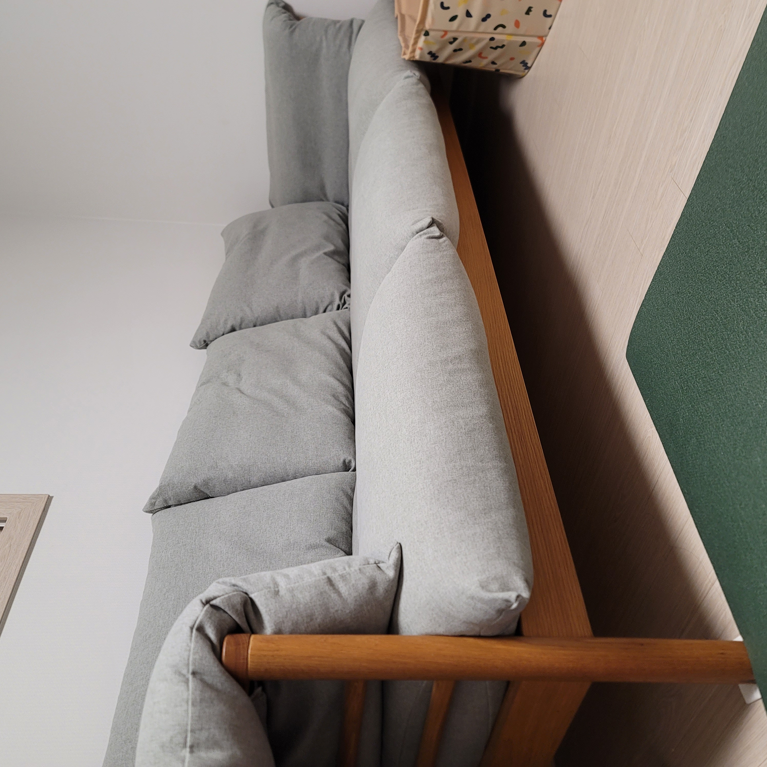 거실에는 원목 쇼파가 있었으며 작은방에는 옷을 걸어두는 행거와