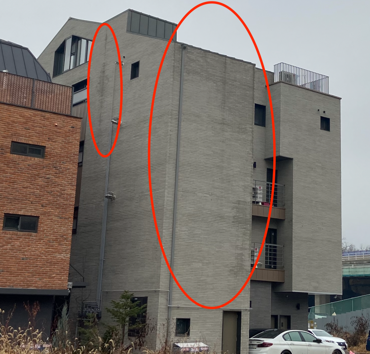 어제 조금 비가 왔을뿐인데, 조적벽돌이 많이 젖는데요