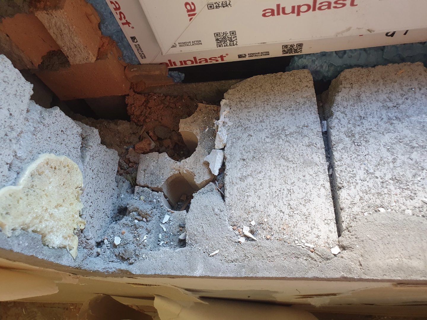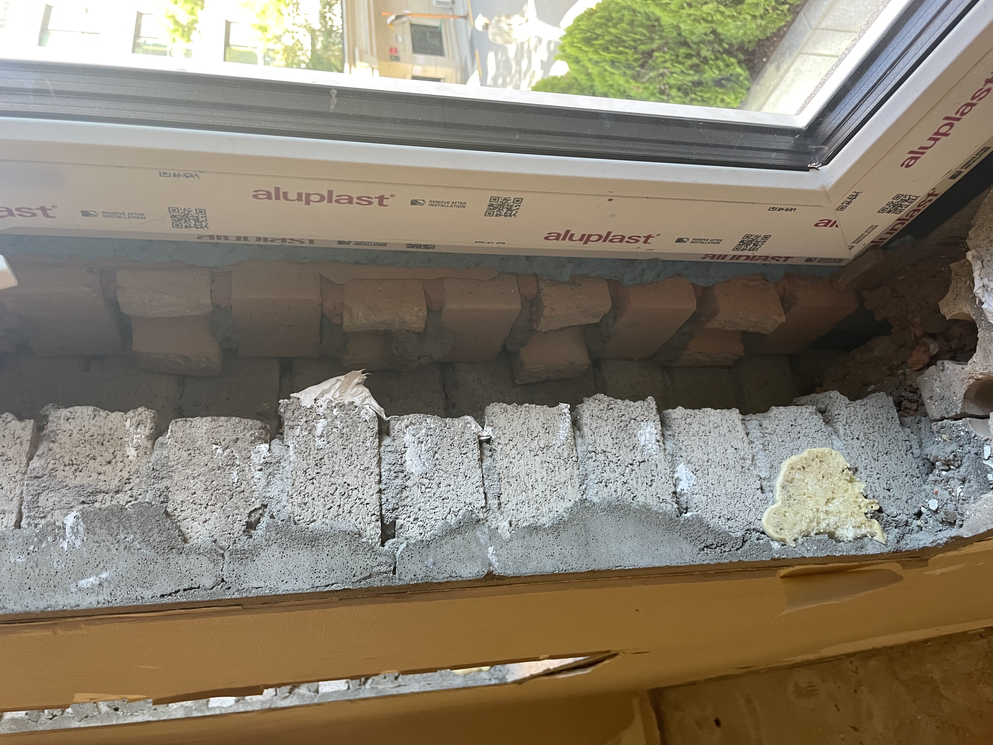 샷시 하부쪽 내부면도 균일하지 않게 벽돌이 쌓여 있습니다.