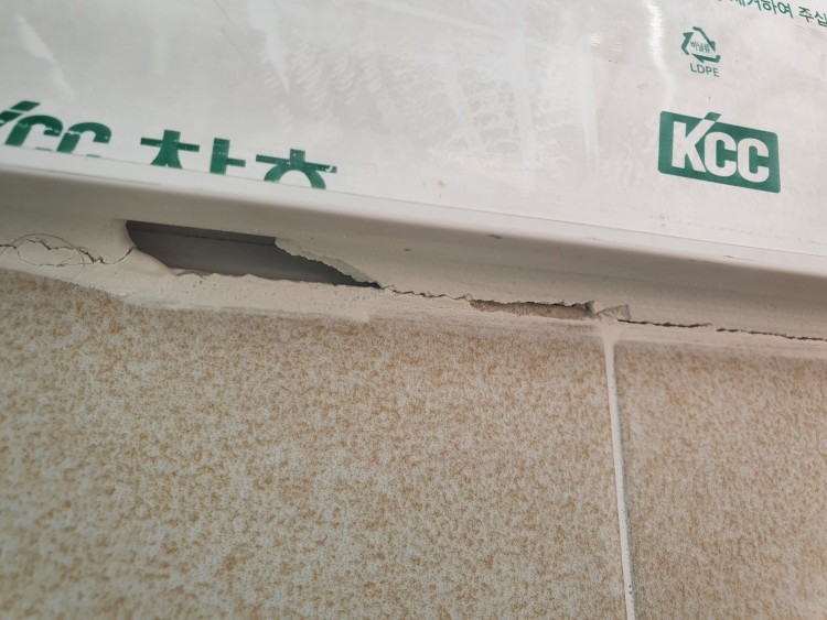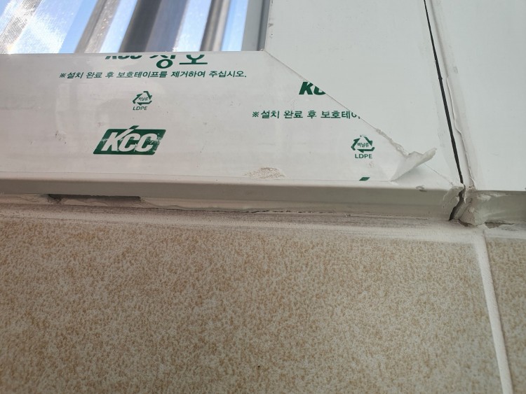 글고 다섯번재 사진에서는 샷시아랫부분이 벌어져서 메지가 깨지고 금이 갔다고 생각했는데, 맞나요?