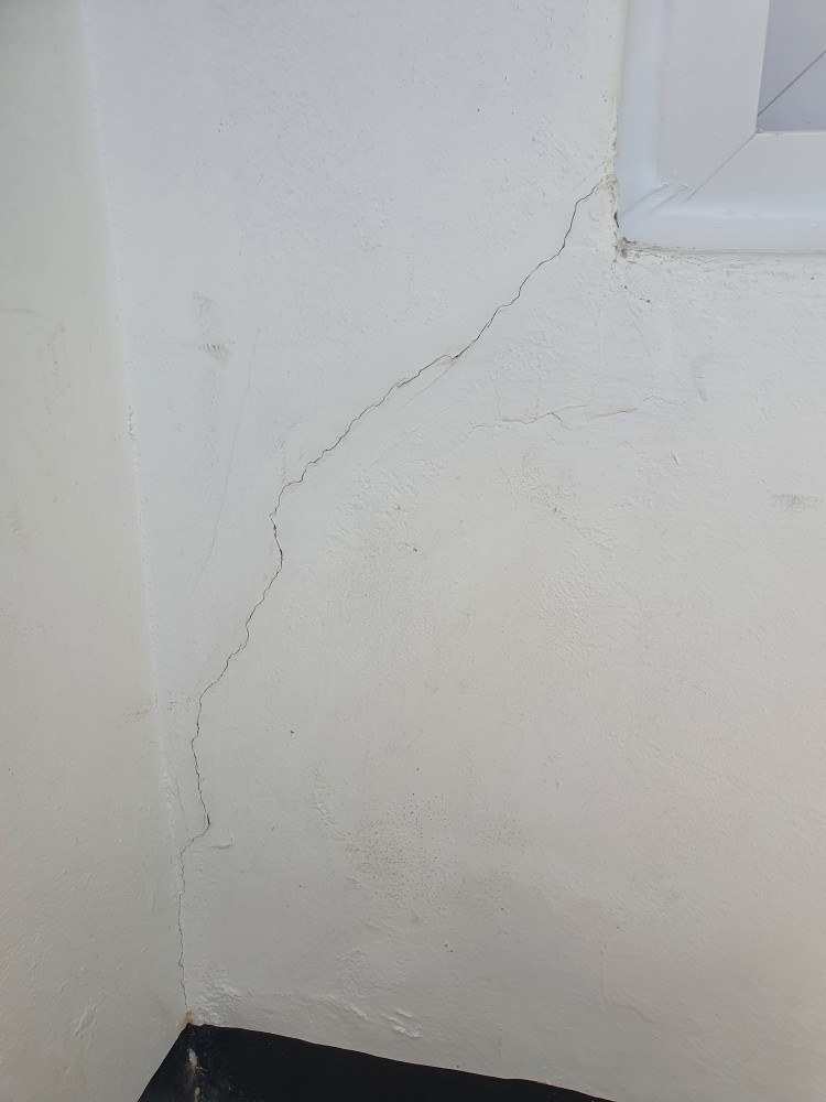 샷시 설치의 충격으로 구조체에 균열이 생기기는 어렵기 때문입니다. 즉 표면의 균열일 가능성이 커보이는데, 일부를 V커팅해 보기 전에는 확답은 어렵습니다.