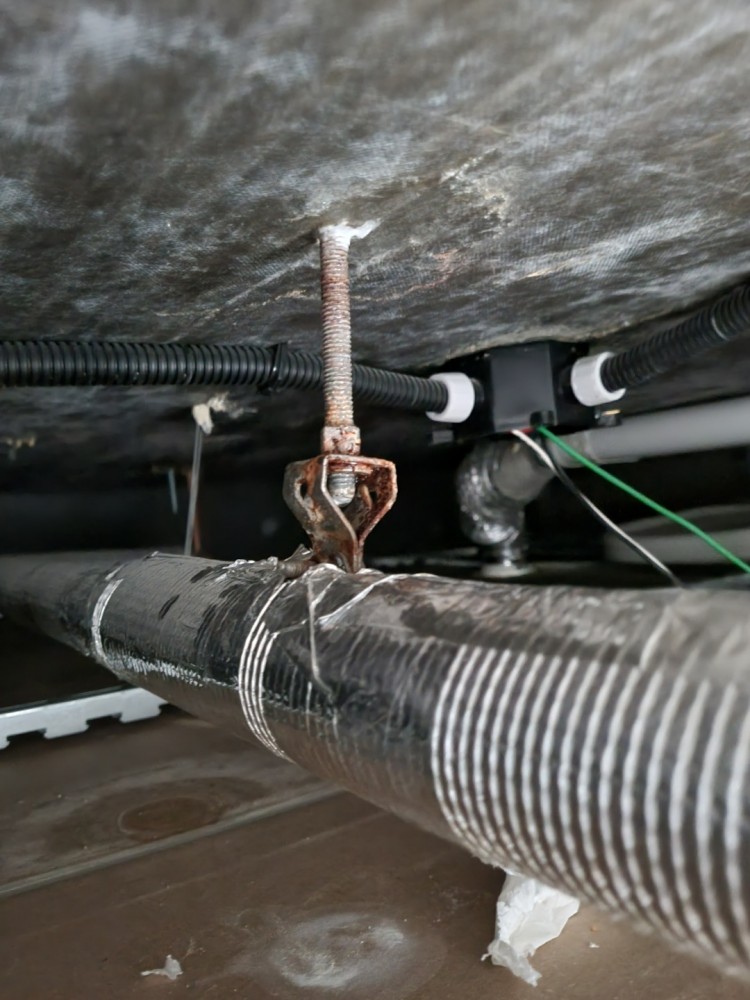 아파트 하자보수팀은 단순히 신축 콘크리트가 머금고있는 습기라며 천정을 열어 스티로폴 중공을 뚫어 2차례나, 물기를 빼면 된다는 식으로 해결하려 했으나 급기야 비가 많이 온 어느날 비가 바닥으로 떨어지자, 옥상의 누수를 인정했습니다.