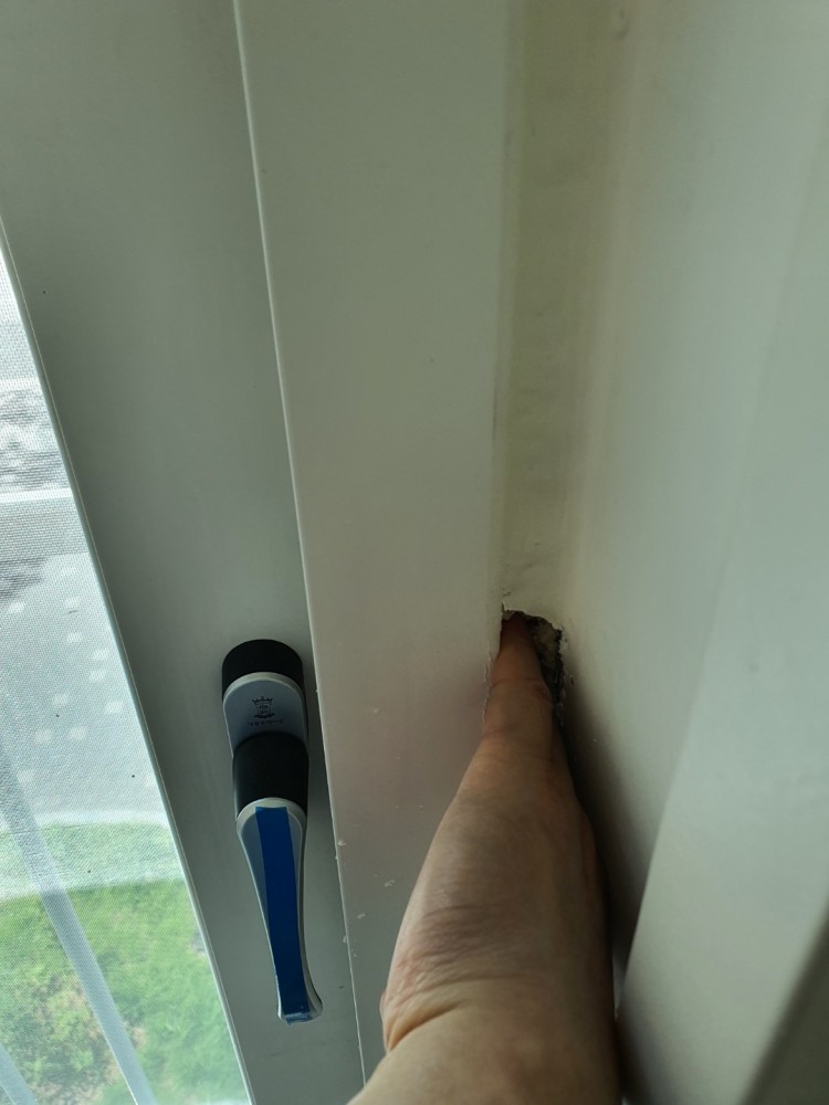 안방 발코니 외벽 샷시인데 창틀에 비해 구멍이 크게 뚫려있오선지 문을 여닫을때마다 창틀 흔들림이 크고 왼쪽 오른쪽 다 두꺼운 실리콘으로 마감되어있고 손으로 눌러보면 속이 비어있는 느낌이 있었습니다 손으로 일부 뜯어보니 안쪽이 텅텅 비어있는데