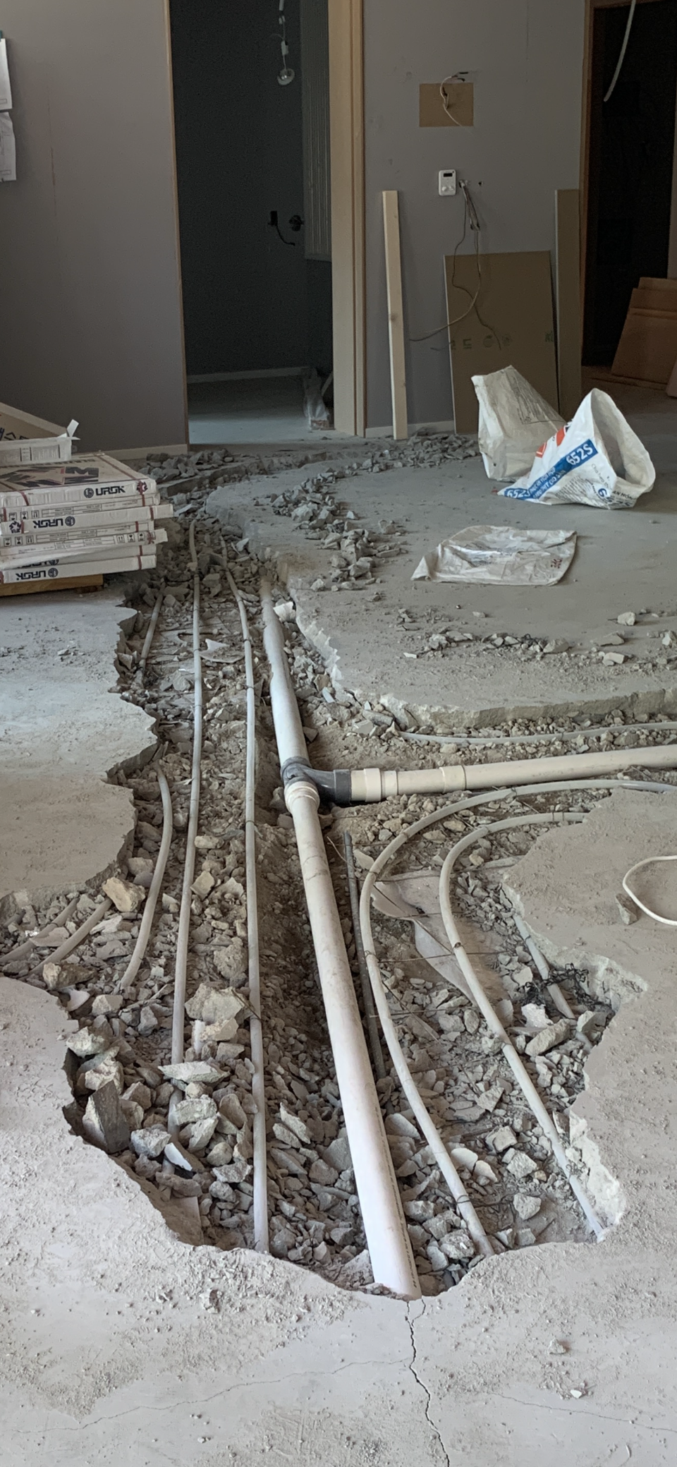 현재 일부 바닥에 구멍을 내서 살펴보니 약간의 물기가 관 주위에 있음을 확인할 수 있습니다.