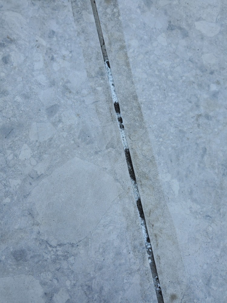 시트방수 몰탈 포세린 타일 마감입니다 줄눈에 하얀 가루같은것이 군대군대 껴있네요