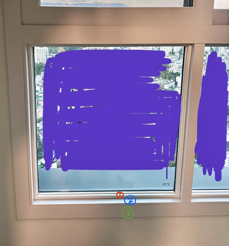 그런데, 유리 교체 하자보수 도중 2,3번째 사진과 같은 크랙, 긁힘, 깨짐을 작업자가 부주의하여 2번(파란색 표시)에 다수 발생시켰습니다.