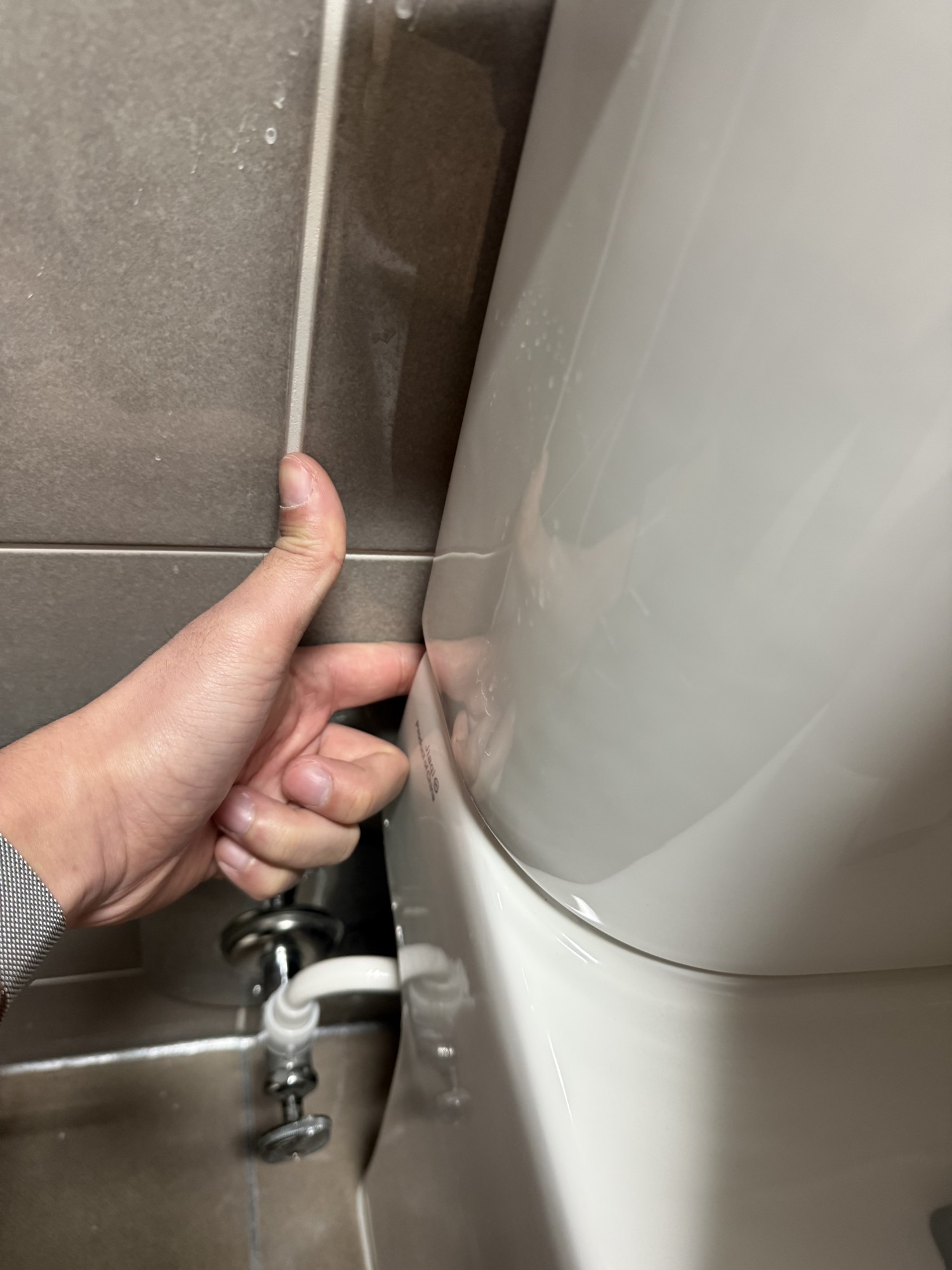 즉, 뒷벽에 밀착해서 밀면, 옆벽과 변기가 서로 틀어지는지의 여부를 확인하십사 한 거였습니다.