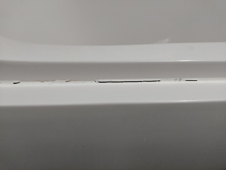 실리콘의 접착이 부실하게 되어 있던 탓에 더해서.. 욕조의 측면을 시공할 때, 밀리지 않게 안쪽에 시멘트벽돌을 서너장 일렬로 넣게 되는데.. 이 벽돌이 없던가, 떨어져 나갔던가 한 것 같습니다.