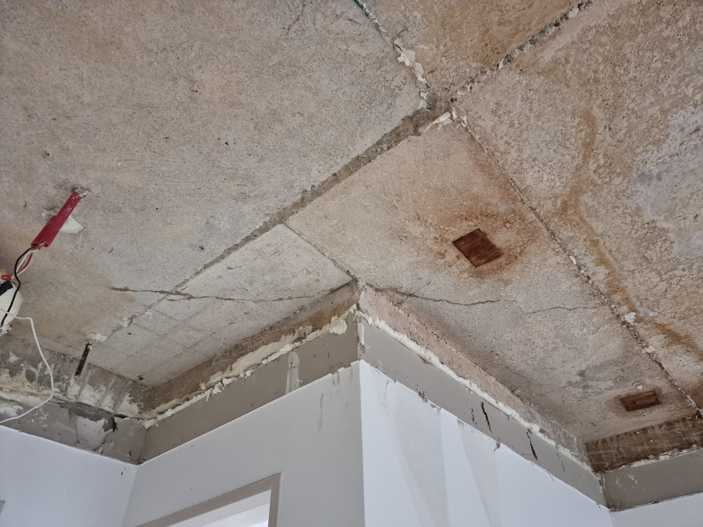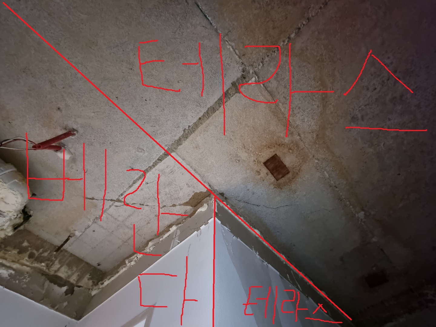 그리고 아래 사진은 천장이 마르면서 육안으로 콘크리트에 실금 같은 게 보이는 사진입니다.