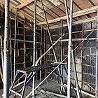 첩탑과 지붕 접합부위 및 측면 석재 물자국, 단열재 시공 불량