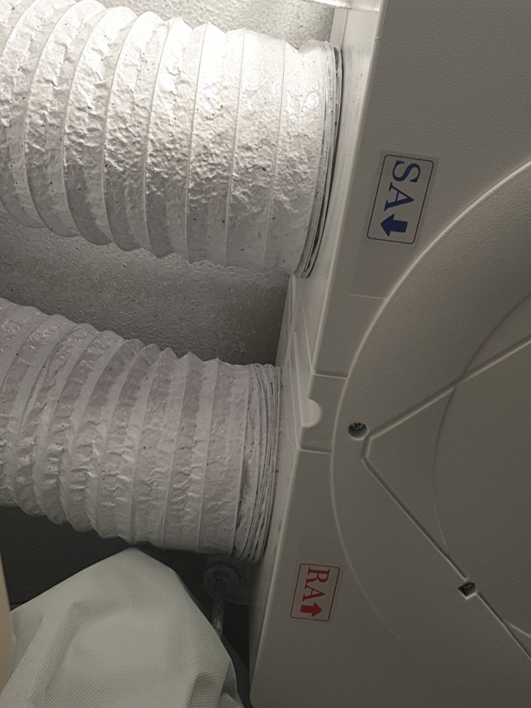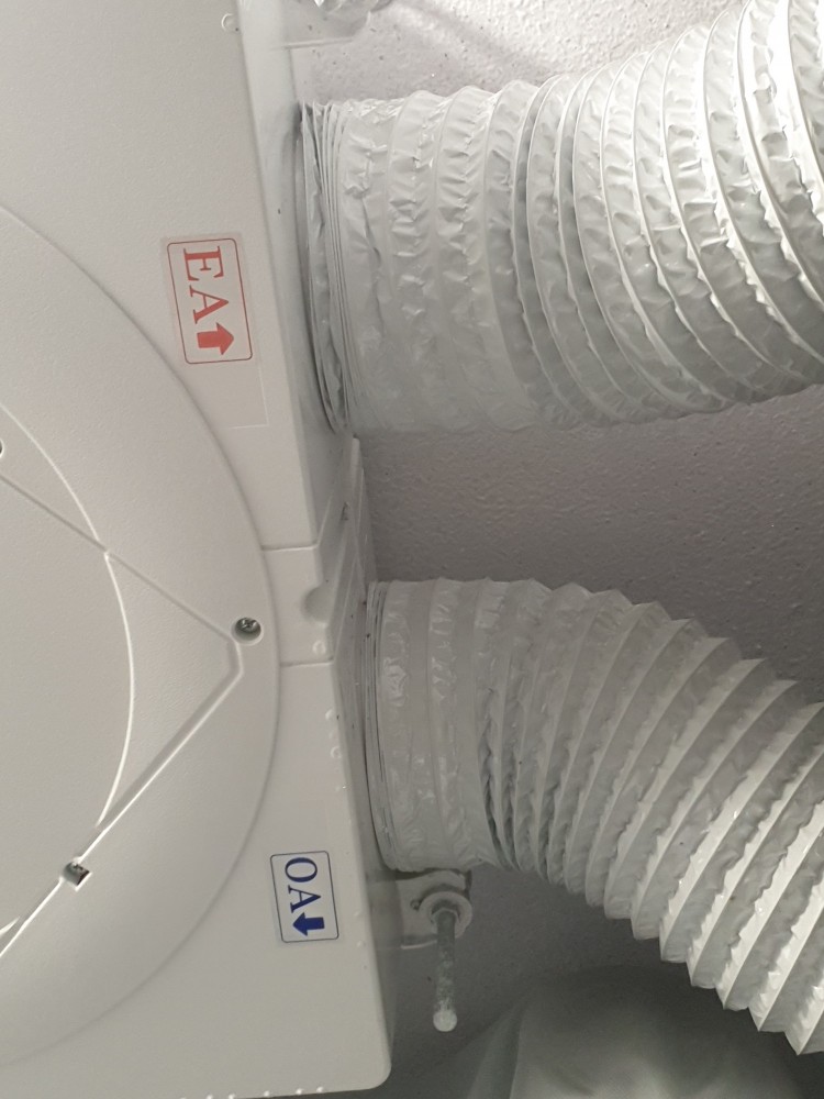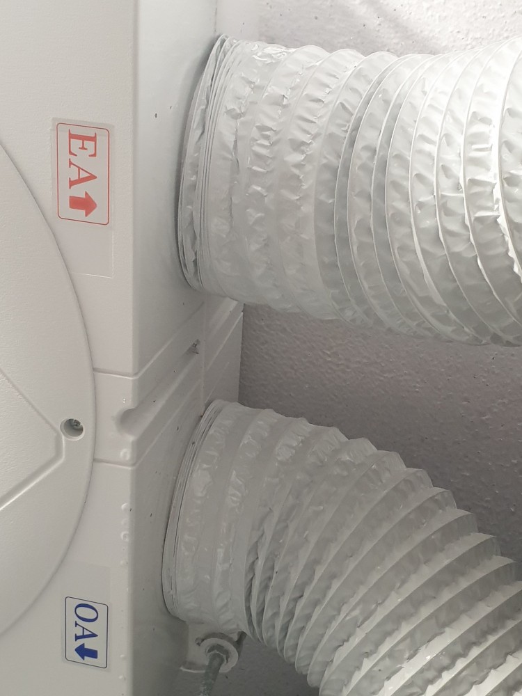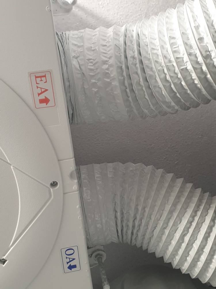 전열교환기는 하루에 2시간정도 공기청정기처럼 틀어놓는데 오늘 보니까 외부공기가 오고가는 앞부분 연결부위에서 손을 대보니 차가운 바람이 새어나오더라고요