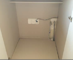 뒤에 선으로 인해 세탁기가 들어가지않아, 밑판에 바닥을 새로 만들어 위에 세탁기를 넣을수밖에없다고합니다.