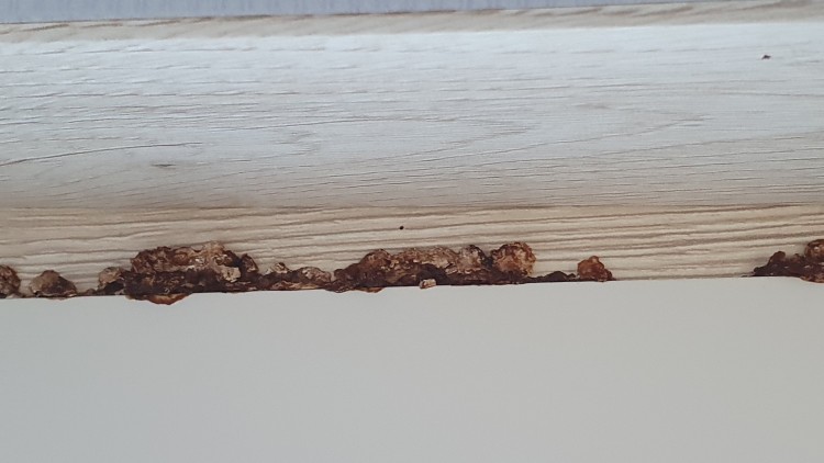 곰팡이라 생각 했는데 닦아보니 뭔가 나무 진액 같기도 하고 물에 젖어 부스러진 나무 같기도 합니다.
