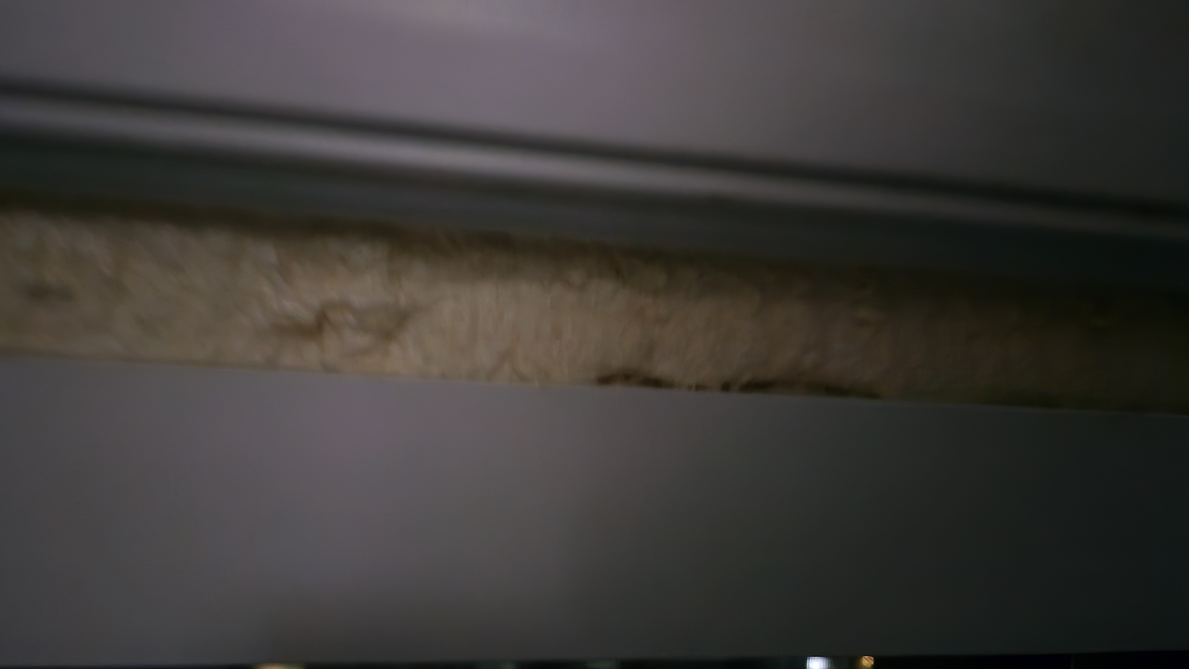 이 공백부분에 대해서는 원래 이렇게 뚫려있는게 맞냐고 물으니, 중간의 공백부분엔 우레탄폼이 쏴져 있고, 도배가 만나는 부분까지 우레탄폼을 쏘지 않은것은 도배지의 변색이 발생할 수 있기 때문이라고 하였습니다.