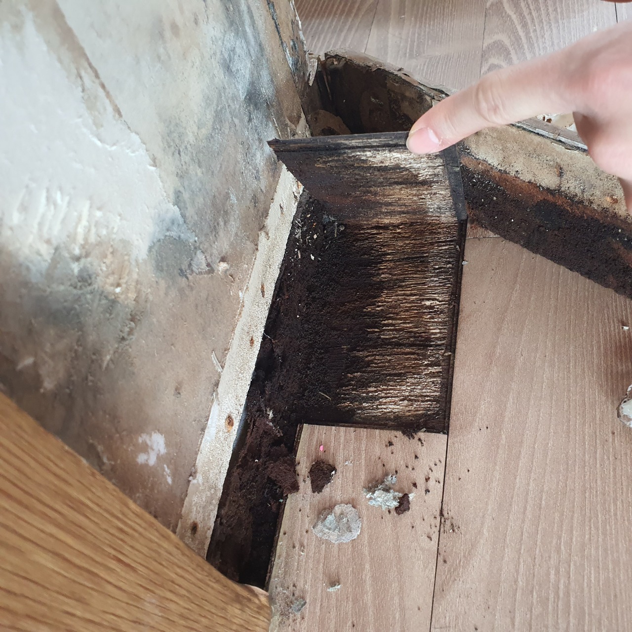 걸레받이쪽 썩은 부분을 긁어낸 사진입니다.