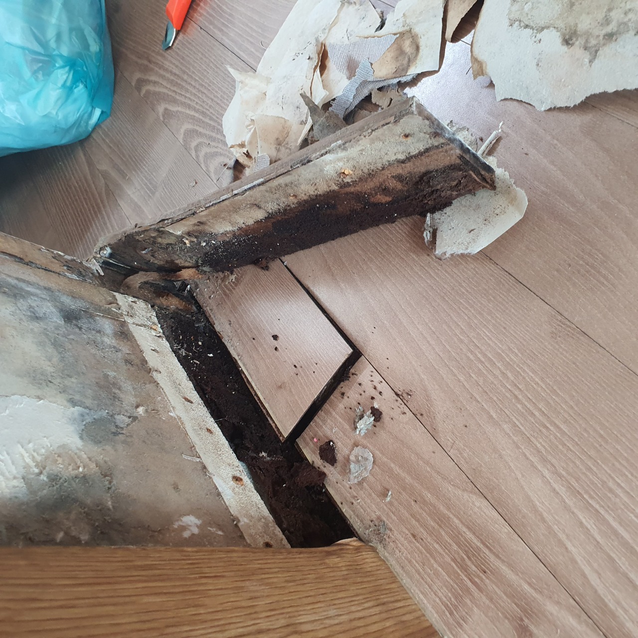 - 벽지와 바닥 강마루를 뜯어보니 습기로 꽉차 있었습니다.