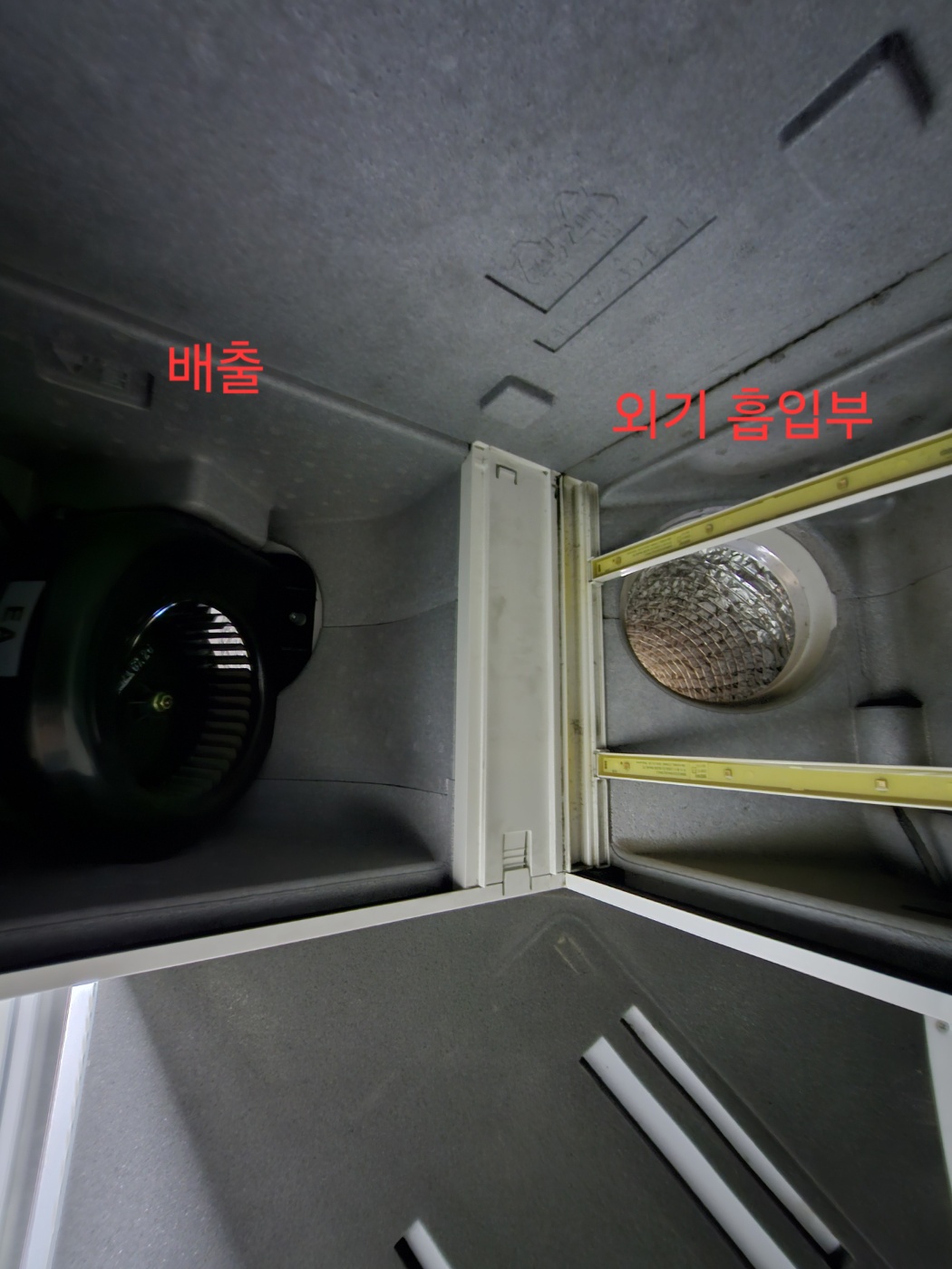 3. 쉽지 않으시겠으나 새로 설치한 환기장치의 아래 뚜껑을 열어서 안 쪽의 모습을 찍어 주실 수 있으실까요?