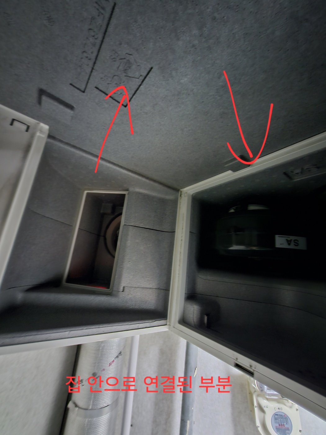 그런데 바람이 저 공배관에서 나온다기보다는 저 석고보드/나무판 안쪽 틈에서 나오는 것처럼 느껴지긴 합니다. 근데 이건 피부 느낌으로 한거라서 확실치는 않네요.