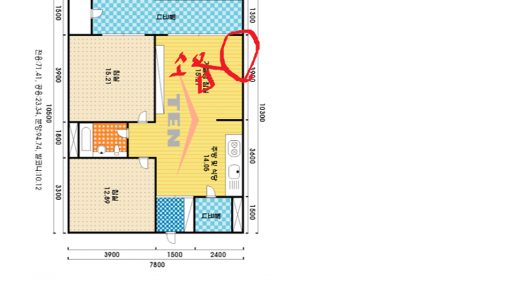 번거로우시겠지만.. 발코니로 나가셔서.. 붉은 색 표시한 쪽을 본 사진 한장 부탁드릴께요.