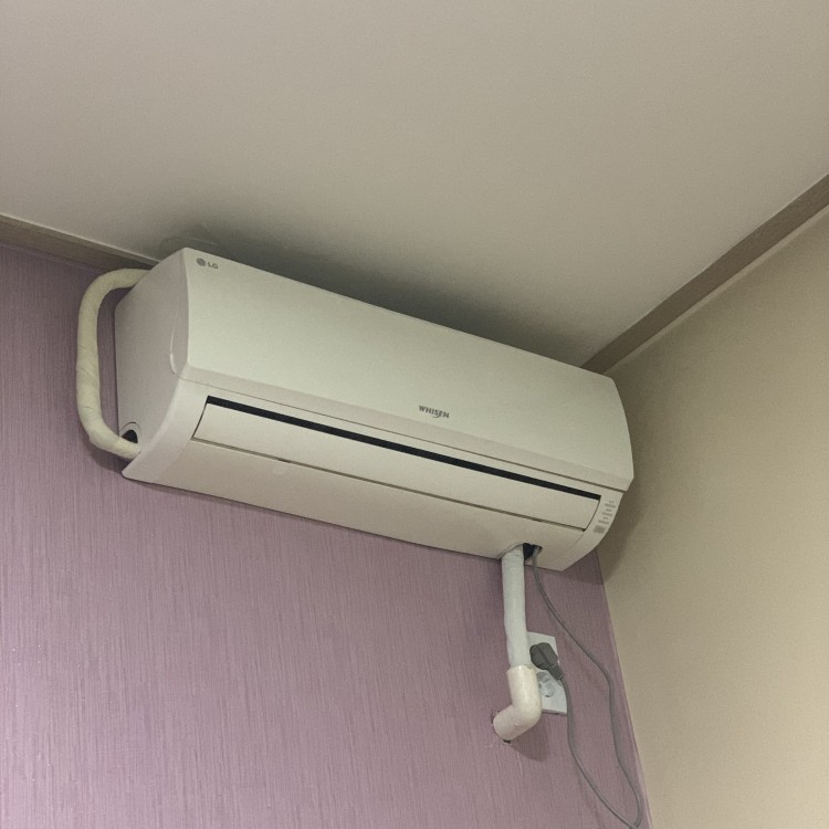 에어컨 배관 같은 경우 벽걸이에어컨으로 사진에서 보시는 바와 같이 실외기 배관은 저렇게 천장을 따라 방 창 바깥의 실외기와 연결되어 있습니다. (1,4호 실외기 사진은 필요하시면 첨부하겠습니다)