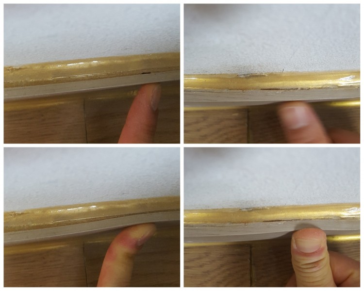 너무 도드라지는 금색 실리콘으로 너무 대충 발라놓은거 이해햐야지 싶었는데 그것도 제댜로 안붙혀놔서 들썩이고.