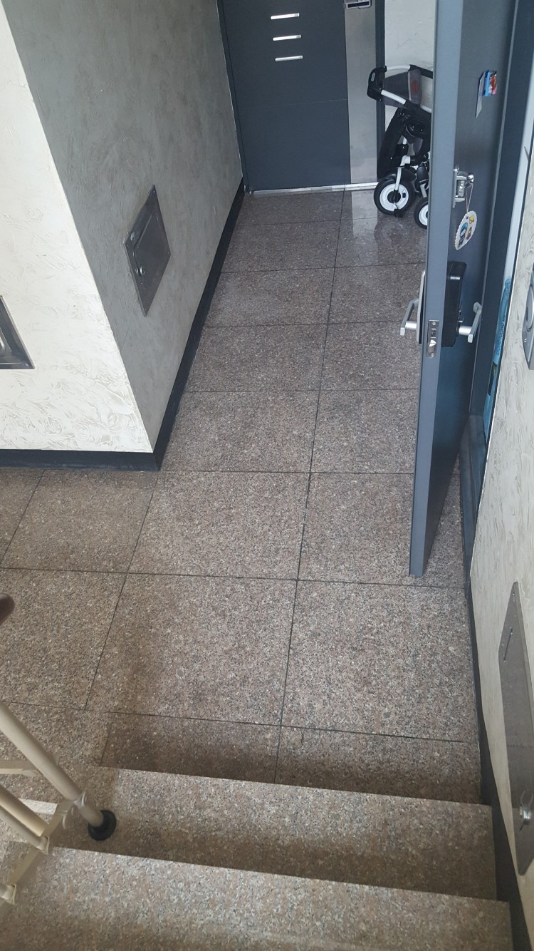 다른층 줄눈부분과 완젼 달라요. 누수 진행될때처럼 4층 현관 전체가 젖고 걔담타고 내려가는중이예요.