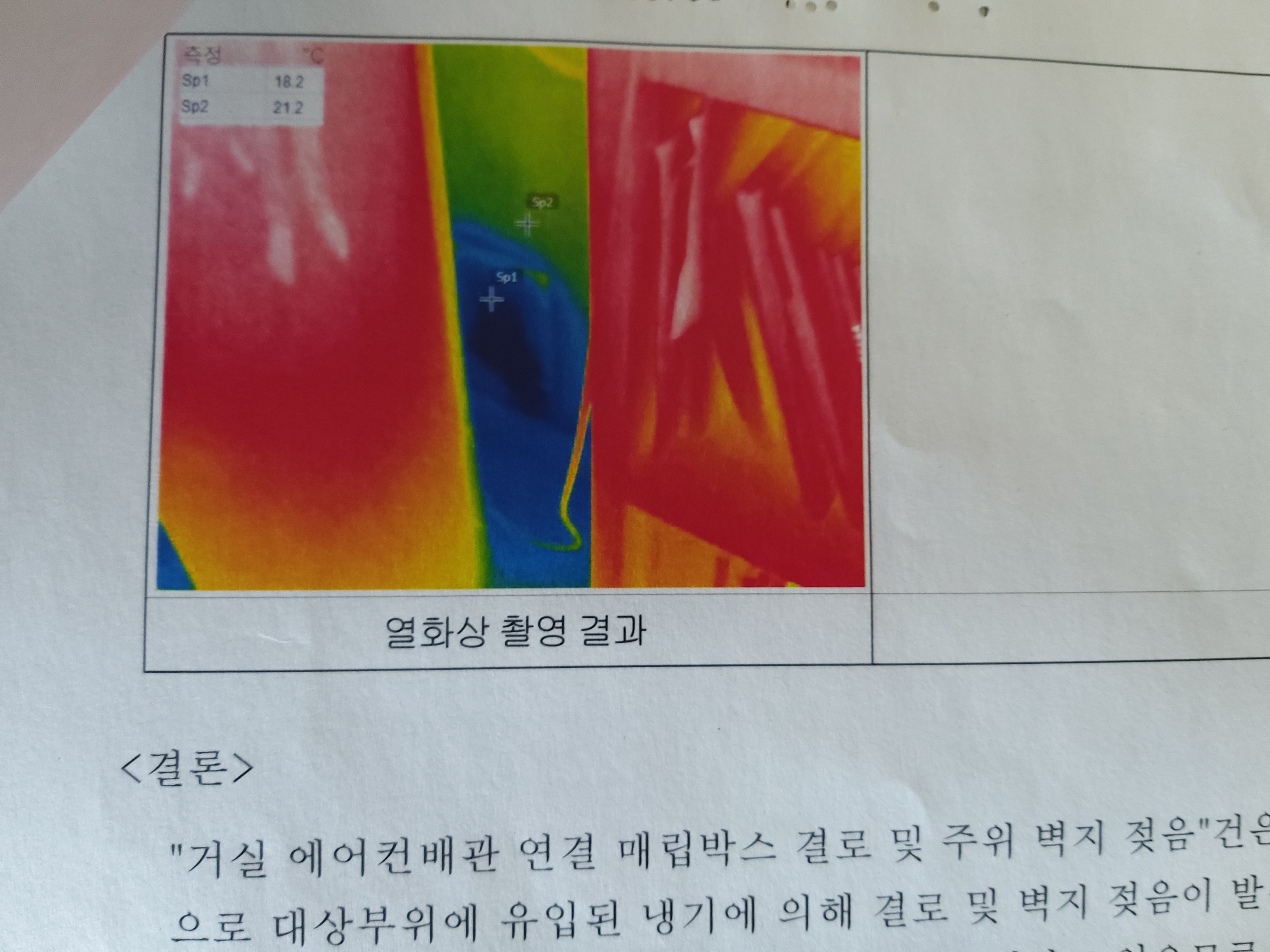 맨위 왼쪽 사진에서는 에어컨 물 호스와 매립형 동관배관이 나가는데 그곳에서도 찬 바람이 불어 나와서  저는 겨울에 그곳에도 휴지를 왕창 꽂아놓고 지내거든요.. 이 문제까지 동시에 해결 하려면 저걸 부수고 빼내어서 단열처리를 두껍게  다시하고 문제 없게 해결해 달라고 하는것은 불가능한 일입니까?  제가 이렇게 주장을 하면 사람을 미친 사람을 취급을 하니 답답해서 말씀드립니다. 참고로 열화상카메라 사진도 올려드렸습니다.