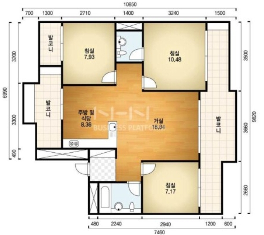 소음이 나는 방의 위치는 아래 동그라미 친 부분이 아닌가요?