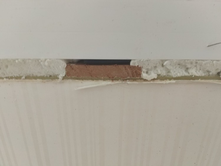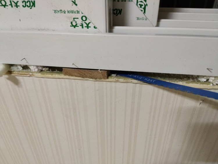 2. 230이중창 샤시 창틀시공시 고임목으로 mdf자투리 사용