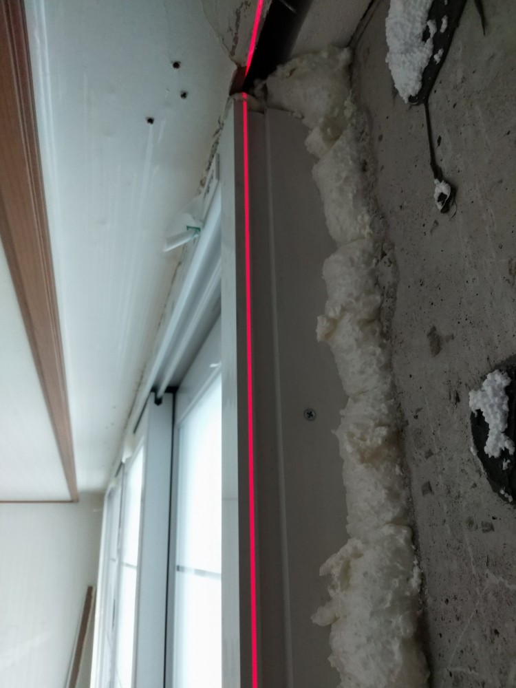 ㅡ 창틀하단부부터 설치고정하다 상단부 가스배관 간섭돼니 기운채로