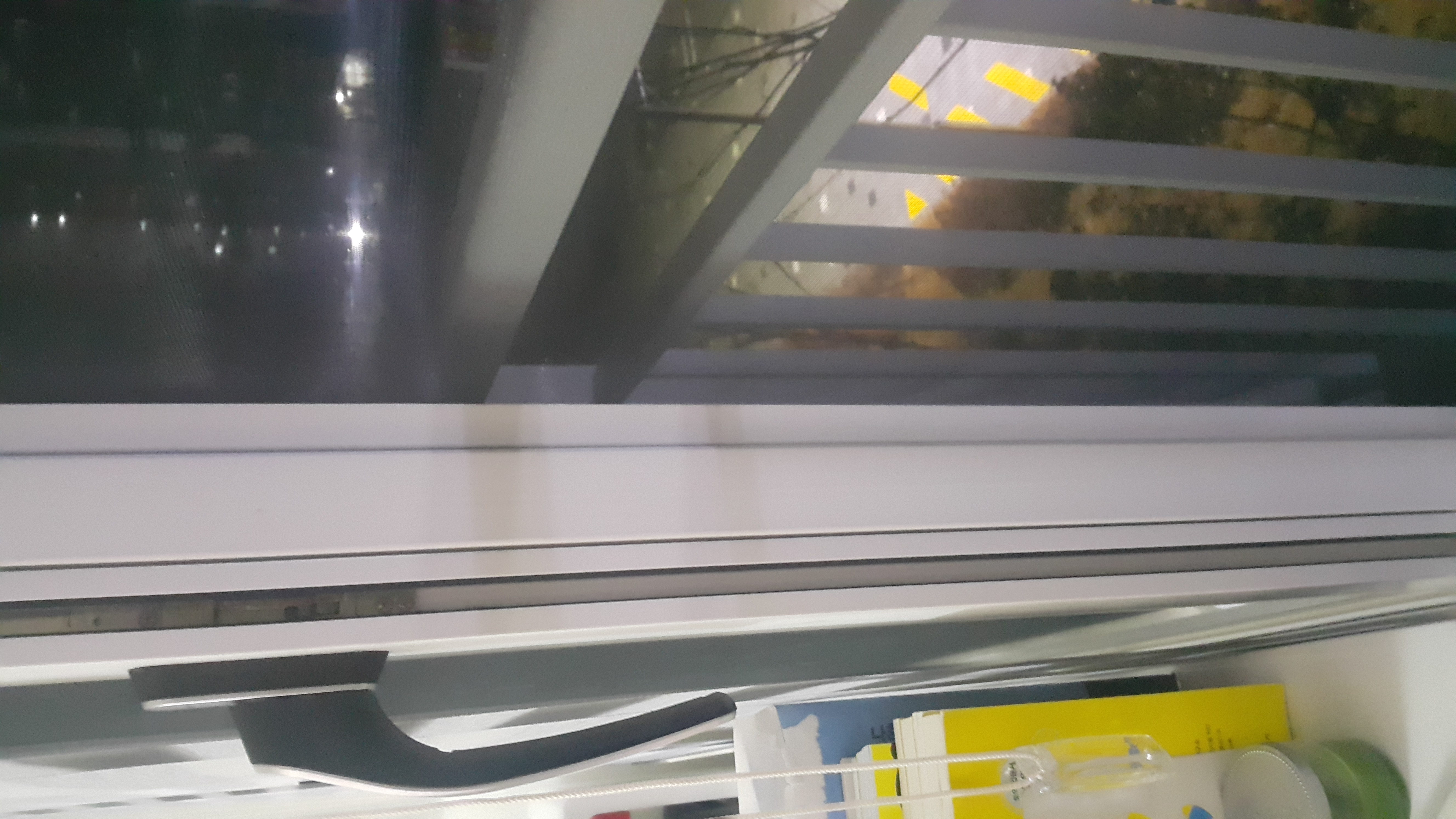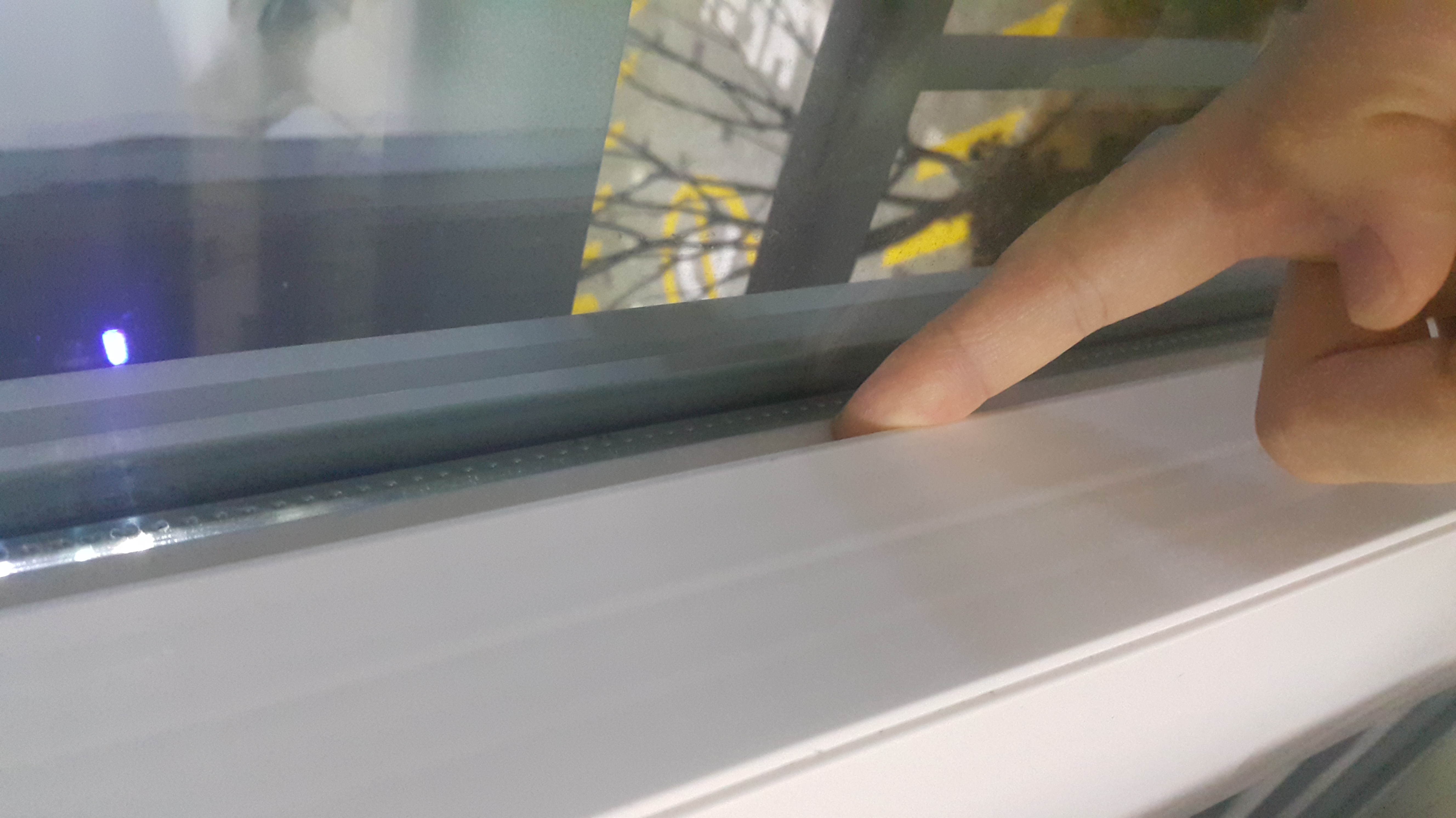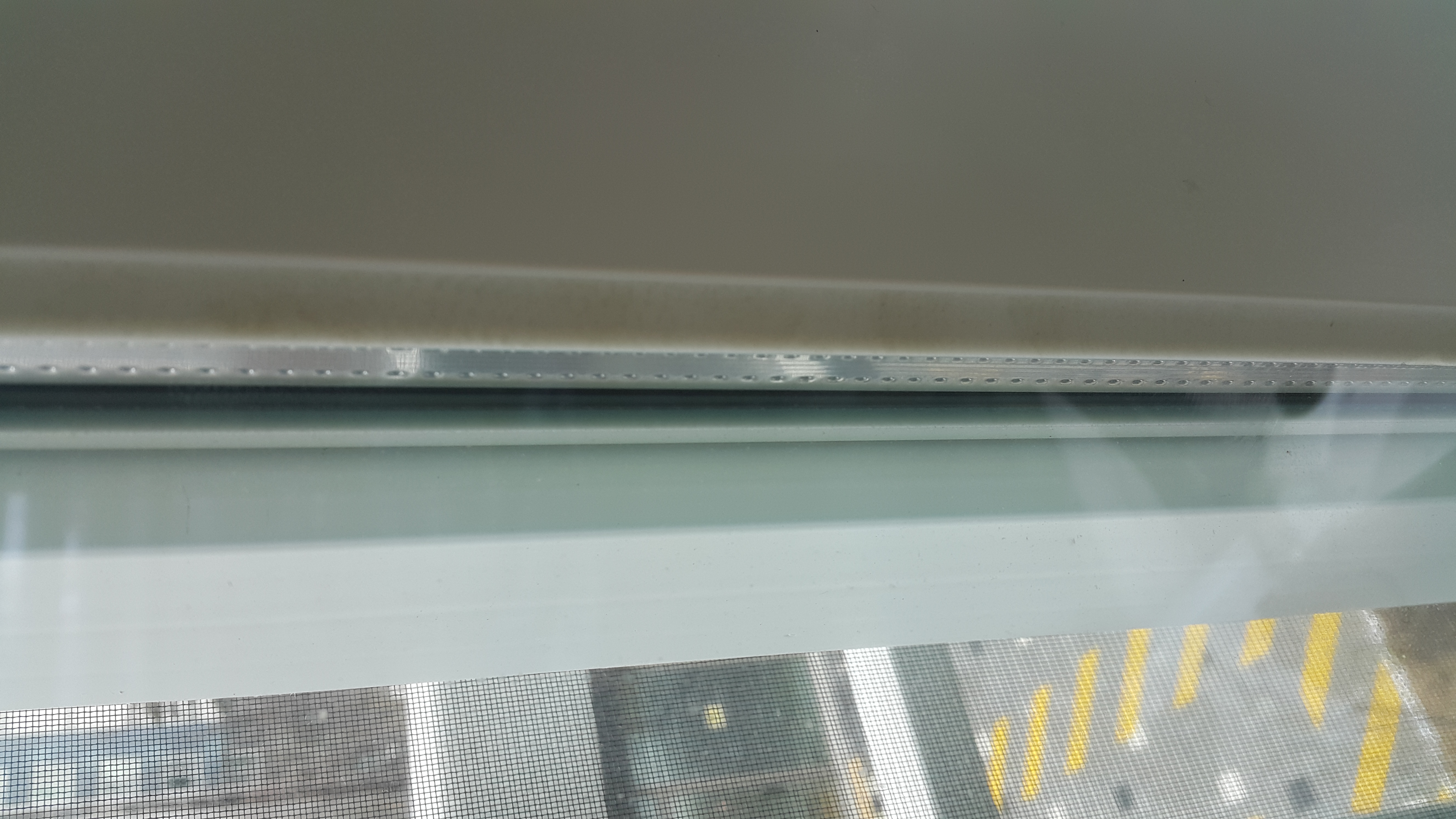오른쪽 창을 왼쪽으로 (손으로) 민 상태에서 오른쪽의 유리틀과 창틀이 벌어질 텐데요..