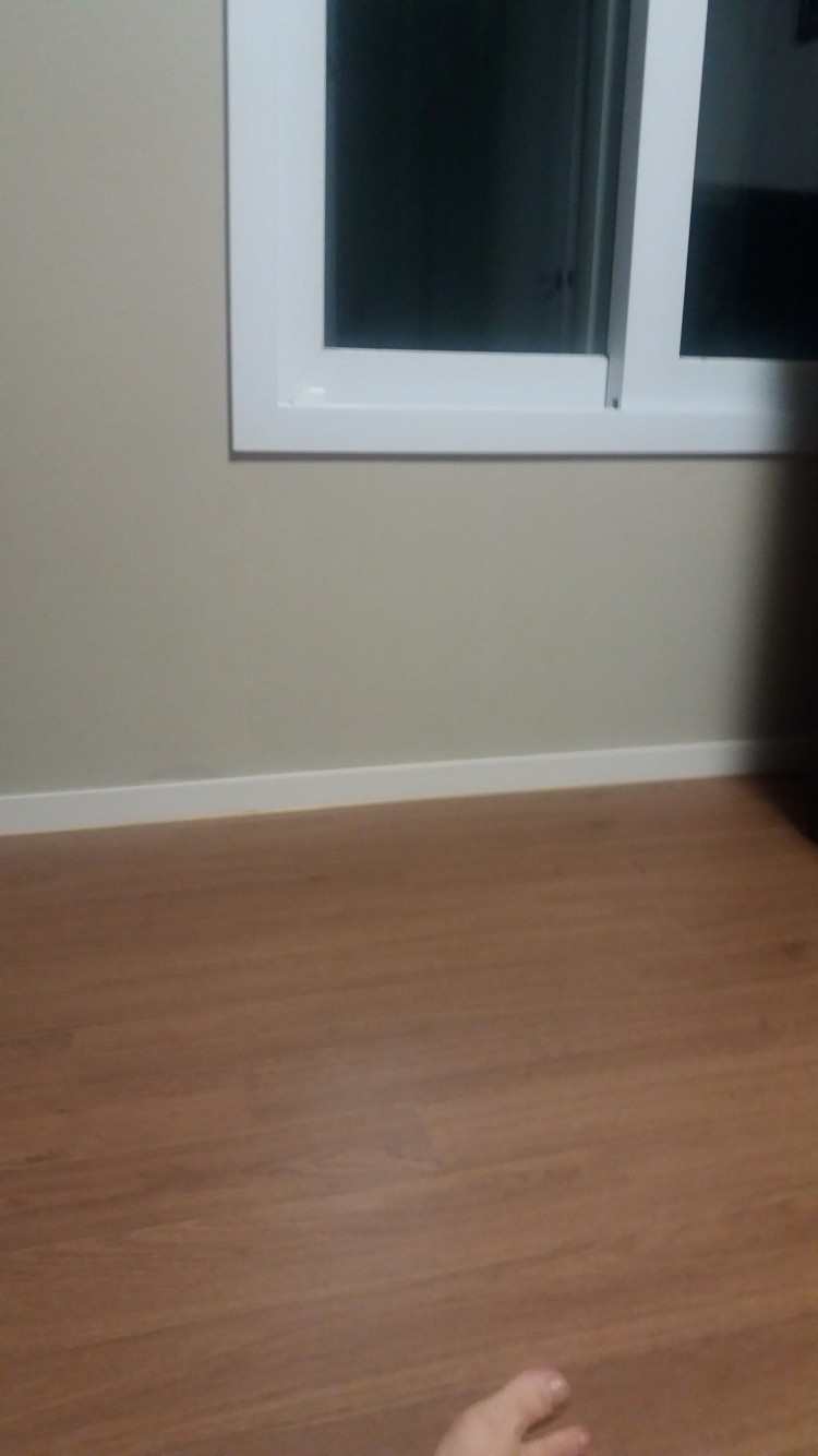 거실창큰쪽에가서 누르니 단단히고정돼있고 도배도야무지게 붙었는데
