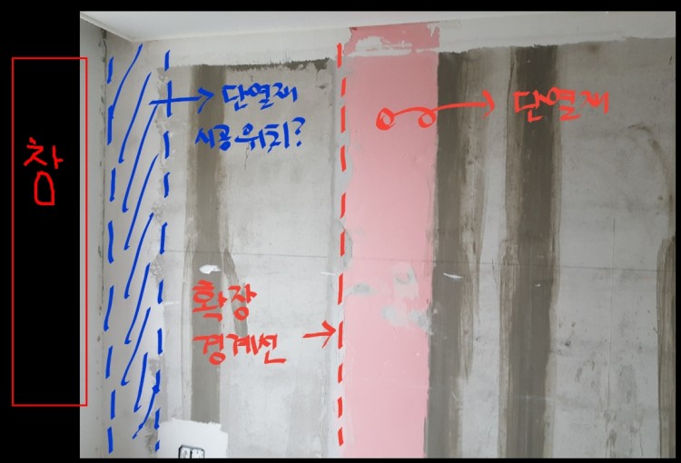 제 소견으로 확장된 벽부분에 단열재(아이소핑크)가 시공되어야 한다고 생각합니다.