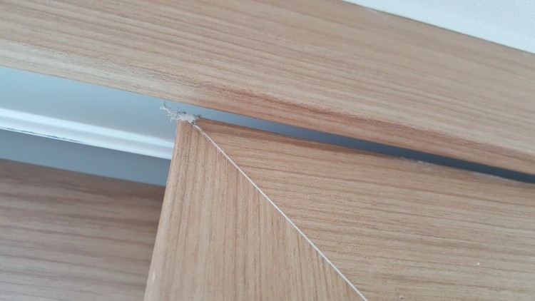 상기와 같이 시공되었을 때 모헤어가 창틀을 덮는 부위가 줄어들어 기밀성능이 현저하게 줄어들 수 있습니다.  이 기밀성능의 저하를 이유로 재시공을 요청하시는 방법 밖에는 없을 것 같습니다.