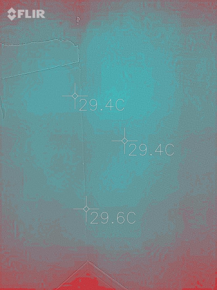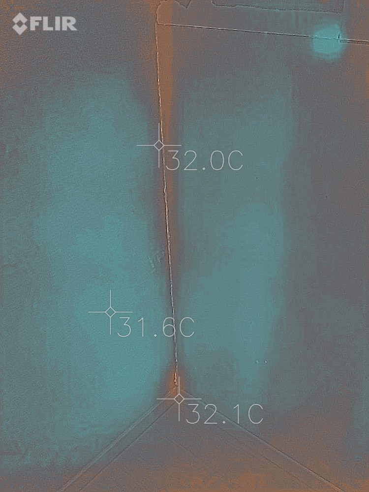 왼쪽벽 모서리 시공 부분은 열화상으로 온도차가