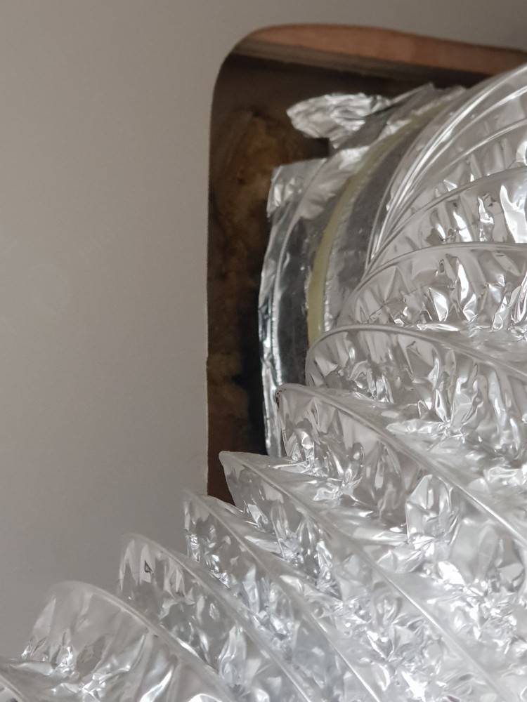 1. 후드 덕트가 외벽을 관통한 다음.. 배관의 주변이 밀폐되지 않아서.. 그 틈으로 외기가 들어 오는 경우.... 배관 주변에 기밀테잎 부착
