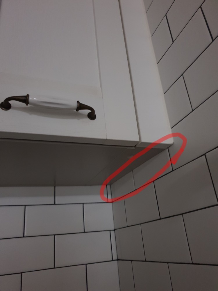 1. 다용도실 벽과 붙어있는 싱크대 상부장은 사진과 같이 사이즈 때문인지 빈공간으로 되어있는것 같고 이쪽면에서 물이 흘러내려 아래쪽이 불어있습니다.
