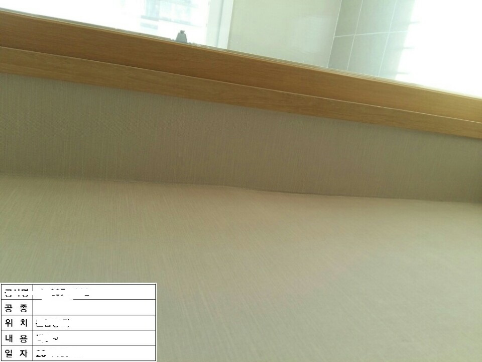 첨부 사진과같이 도배 중간에 분홍색이 나타났습니다.