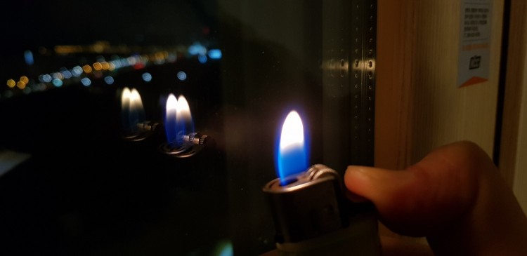 라이터 불빛으로 보면 안쪽창은 3번면에 코팅되어있고 (색이 약간 달라보이긴하나 확실히는 모르겠네요 ㅠ)