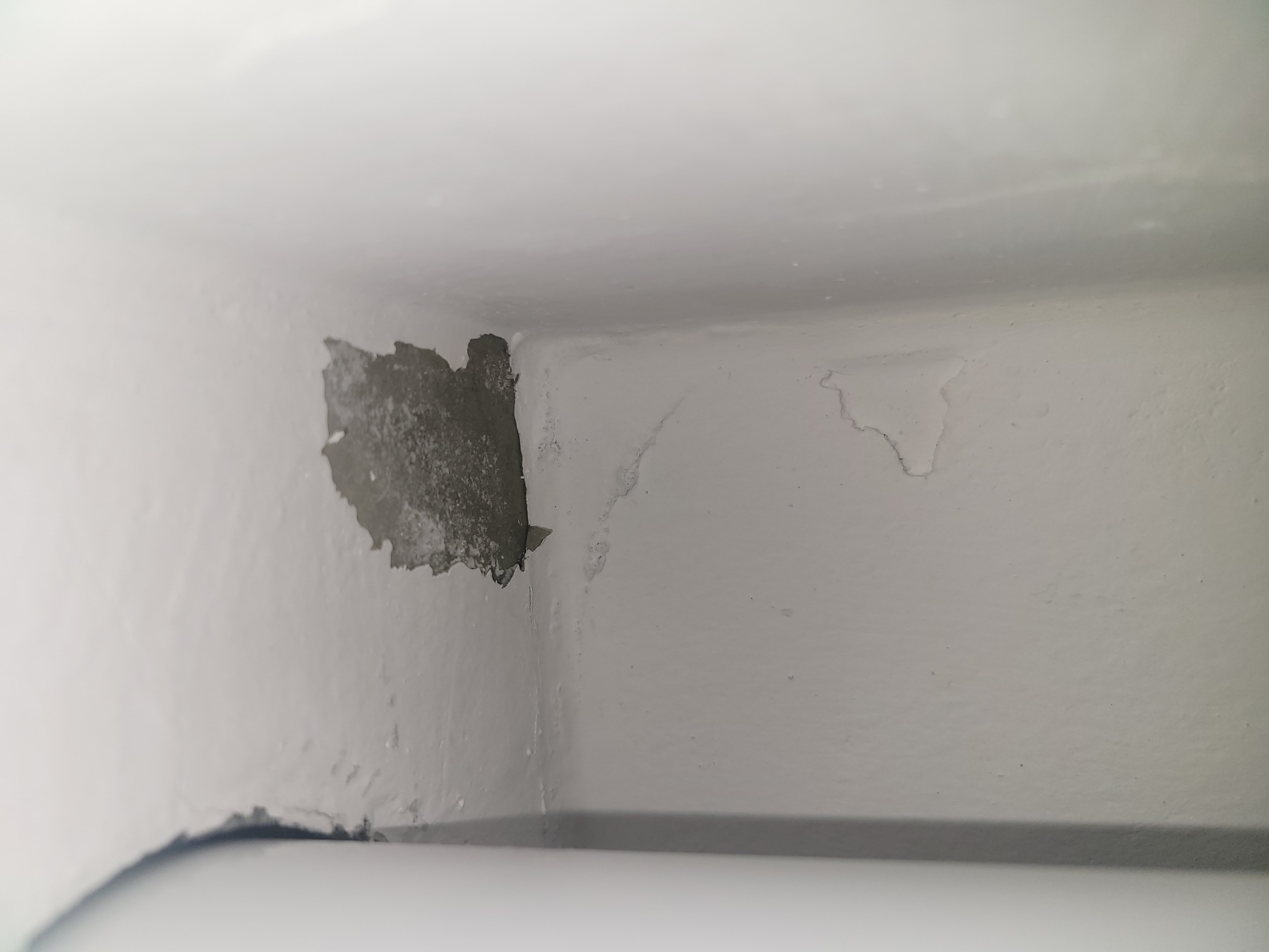- 샷시와 우수관 사이 페인트가 뜨더니 떨어집니다.