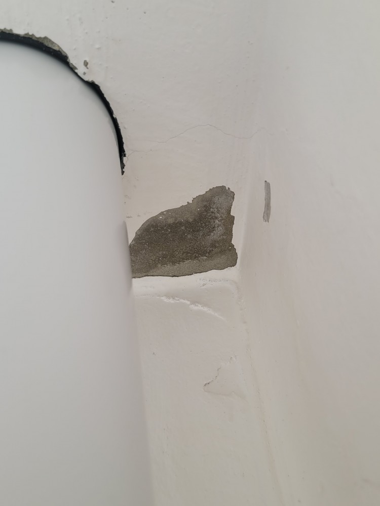 * 참고로 1달전쯤 우수관쪽 누수가 있어 천장벽쪽이 젖었습니다.