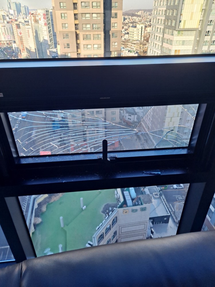 3년된 오피스 빌딩인데요. 내부유리가 자꾸 깨집니다. 복층유리
