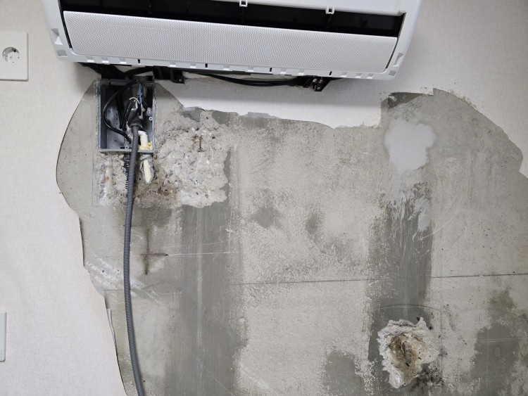 안방 내벽 에어컨 물빠지는 배관 주위로 겨울철에만 물고임 현상이 생깁니다. 시공사에서 저희집 실외기쪽 구멍 막았구요~ 윗세대도 막았고 외부크랙 공사도 했는데 여전히 이 현상이 생깁니다. 난방을 안해서 그렇다는 이상한 소리만 하고 하자보수를 안해주는데 저희가 대응할 방법이 뭐가 있을까요? 도와주세요~