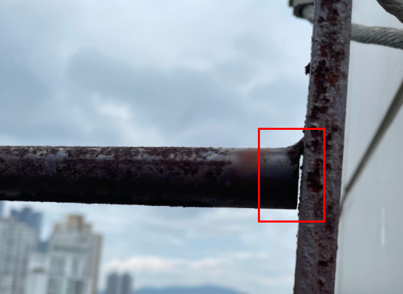 사진 속 네모 부분처럼 용접이 제대로 되어있지 않은 틈을 통해서 난간 비어있는 부분에 바람이
