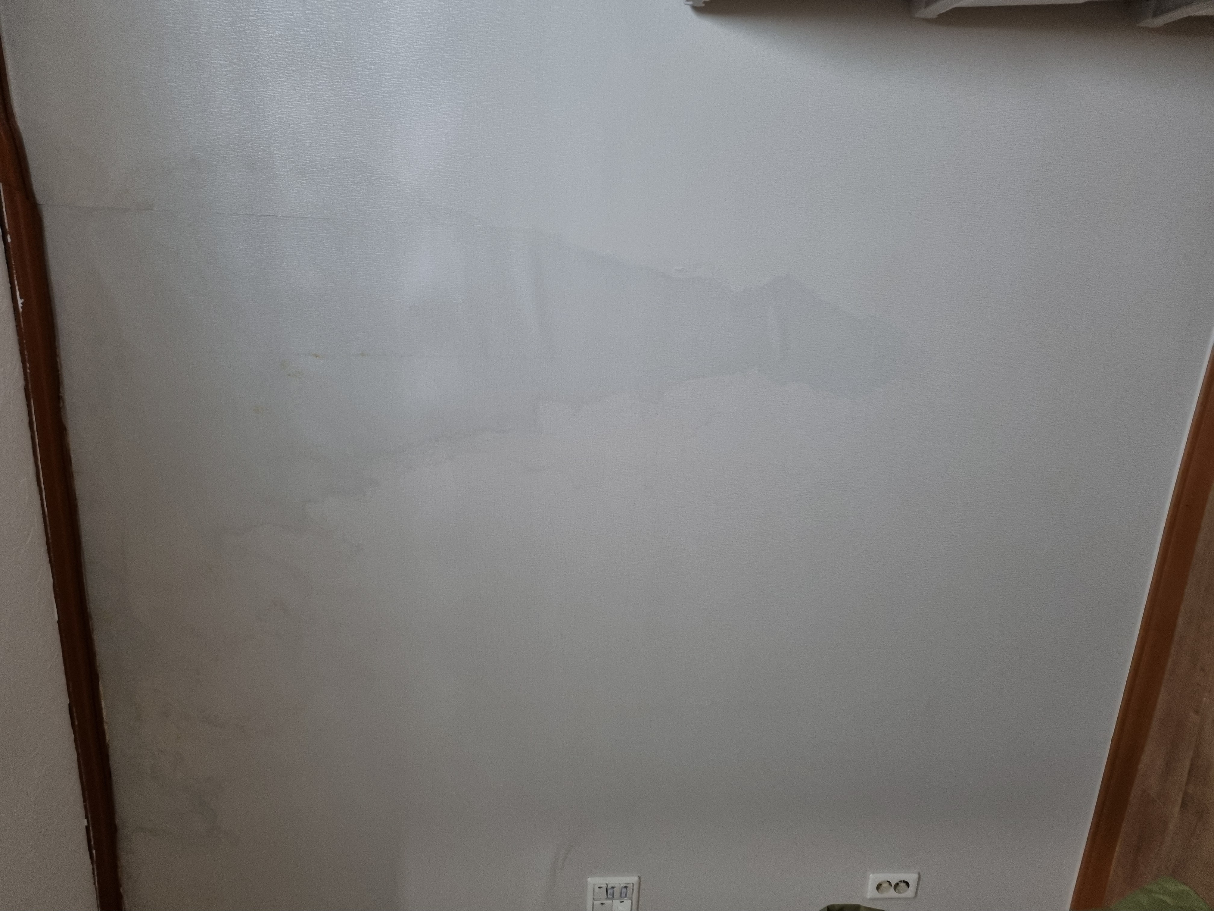 금일 (4월27일) 현장확인시에는 피해부분의 아래쪽은 말라가고 있는 중이었고 상부 몰딩부분에 약간의 수분기 정도만 남아있는 정도로 확인